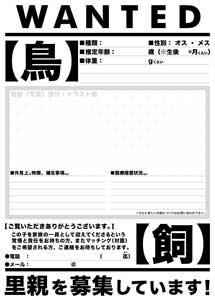 WANTED BIRD : 「鳥の里親(飼主)を募集しています!」