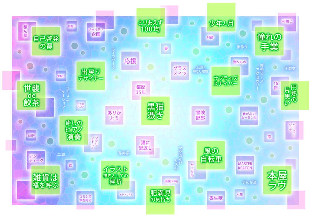 - その後アルバイトとして、もしくは個人として幾つかのデザイン業務を経験する機会を得たことで更にその関心は高まり、またこの先の自身の生き方を模索する中で現在はこのデザイン技術を通してたくさんの人々の夢実現の助力をして生きていくことこそ私の天命であると確信を持つに至り、就業した後も並行して日々活動しております。