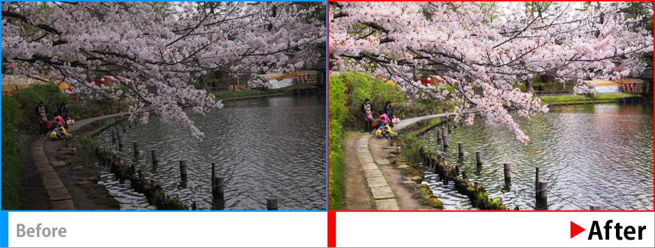 曇天での撮影写真をできるだけ自然に鮮やかな印象に変更する。