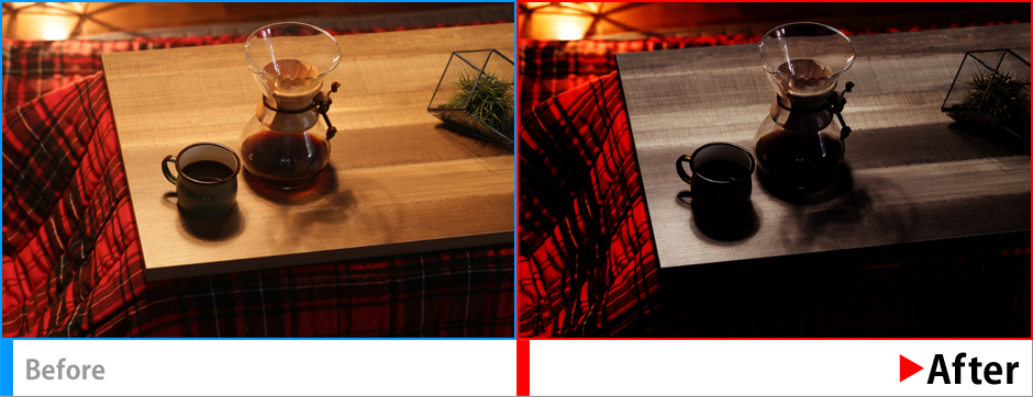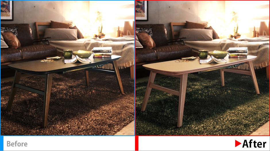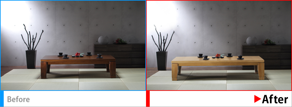 無骨さの演出プラス、商品(こたつ天板)の色を実際の商品に合わせる。