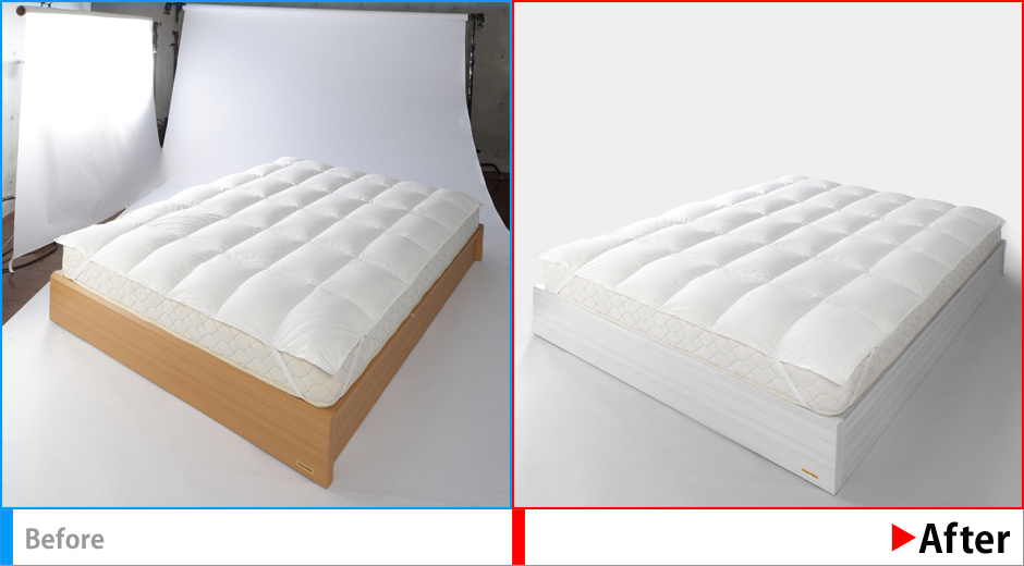 撮影時のしわの消去後、商品本来の色、質感を再現する。