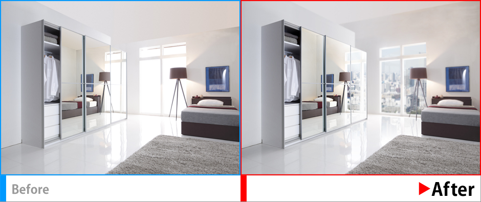 窓外の風景、室内への映り込みを合成