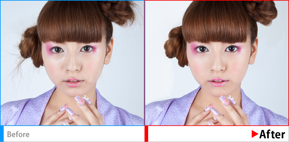 人物レタッチ習作。肌、瞳、唇、髪の毛など、一折通り手を入れ画像を整えました。