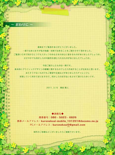 - 猫の保護活動を行うNPO法人様を支援する為に制作した各種グラフィック作品を掲載したプレゼンファイル
